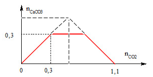 Sục CO2 vào dung dịch chứa a mol NaOH và b mol Ca(OH)2 ta thu được kết quả như hình bên. Tỉ