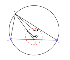 Cho tam giác ABC nội tiếp đường tròn \(\left( O \right)\) có bán kính \(R = 9\,cm\). Hai điểm B, C cố định, I là trung điểm của BC, G là trọng tâm tam giác ABC. Biết rẳng khi A di động trên \(\left( O \right)\) thì G di động trên một đường tròn \(\left( {O'} \right)\). Tính bán kính R’ của đường tròn \(\left( {O'} \right)\).