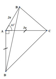 a) Cho tam giác nhọn \(ABC\), \(AB = 2a,\,AC = 3a,\,\,\widehat {BAC} = {60^0}\). Về phía ngoài tam giác, dựng tam giác \(ACD\) vuông cân tại đỉnh \(A\). Tính độ dài các đoạn thẳng \(BC,\,BD\) và các tích vô hướng \(\overrightarrow {AB} .\,\overrightarrow {AC} ,\,\,\overrightarrow {BD} .\,\overrightarrow {AC} \) theo \(a\).