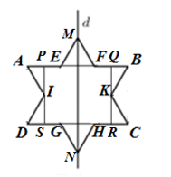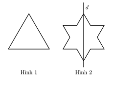 Ban đầu ta có một tam giác đều cạnh bằng 3 (hình 1). Tiếp đó ta chia mỗi cạnh của tam giác thành 3 đoạn bằng nhau và thay mỗi đoạn ở giữa bởi hai đoạn bằng nó sao cho chúng tạo với đoạn bỏ đi một tam giác đều về phía ngoài ta được hình 2. Khi quay hình 2 xung quanh trục \(d\) ta được một khối tròn xoay. Tính thể tích khối tròn xoay đó.