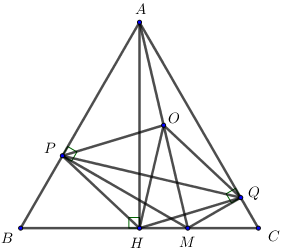 Cho tam giác đều ABC có đường cao AH. Trên cạnh BC lấy điểm M tùy ý (M không trùng với B, C, H). Gọi P, Q lần lượt là hình chiếu vuông góc vủa M lên AB và AC.