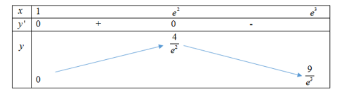Biết rằng GTLN của hàm số \(y = \frac{{{{\ln }^2}x}}{x}\) trên đoạn \(\left[ {1;{e^3}} \right]\) là \(M =