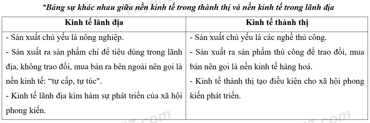 Ở châu Âu, nền kinh tế trong các thành thị trung đại có gì khác so với nền kinh tế lãnh địa?