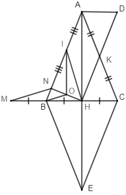 d. Vẽ \(HN \bot AB\left( {N \in AB} \right)\), gọi I là trung điểm của AN. Trên tia đối của tia BH lấy điểm M sao cho B là trung điểm của HM. Chứng minh: \(MN \bot HI\)