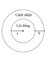Cáp tròn truyền dưới nước bao gồm một lõi đồng và bao quanh lõi đồng là một lõi cách nhiệt như hình vẽ . Nếu \(x = \frac{r}{h}\) là tỉ lệ bán kính lõi và độ dày của vật liệu cách nhiệt thì bằng đo đạc thực nghiệm người ta thấy rằng vận tốc truyền tải tín hiệu được cho bởi phương trình \(v = {x^2}\ln \frac{1}{x}\) với \(0 < x < 1\). Nếu bán kính lõi là \(2cm\)thì vật liệu cách nhiệt có bề dày \(h(cm)\)bằng bao nhiêu để tốc độ truyền tải tín hiệu lớn nhất?