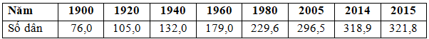 Cho bảng số liệu sau: QUY MÔ DÂN SỐ HOA KÌ, GIAI ĐOẠN 1900