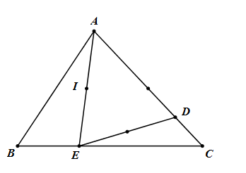 Cho tam giác ABC. Trên cạnh AC lấy điểm D, trên cạnh BC lấy điểm E sao cho \(AD = 3DC,\,\,EC = 2BE\)