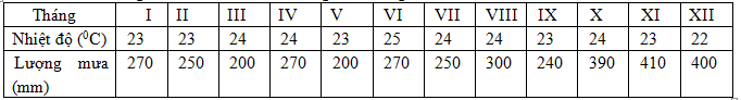 Cho bảng số liệu: Nhiệt độ và lượng mưa trung bình năm của khu vực Xích đạo.