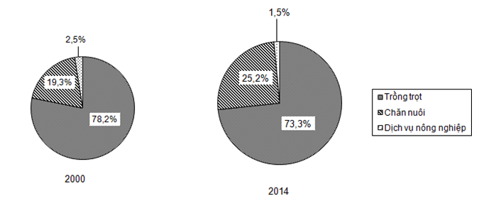 Qui mô và cơ cấu giá trị sản xuất phân theo ngành của ngành nông nghiệp nước ta năm 2000 và 2014