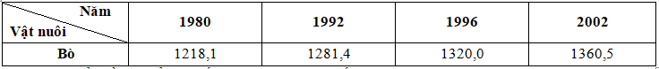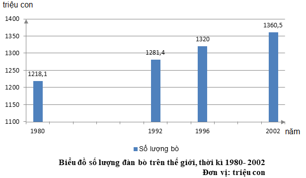 a. Vẽ biểu đồ cột thể hiện số lượng đàn bò trên thế giới, thời kì 1980- 2002.
