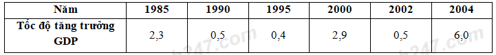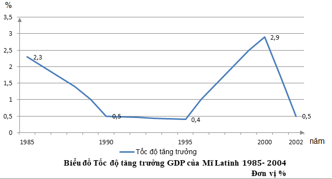 Cho bảng số liệu: TỐC ĐỘ TĂNG TRƯỞNG GDP CỦA MĨ LA TINH GIAI ĐOẠN 1985- 2004.