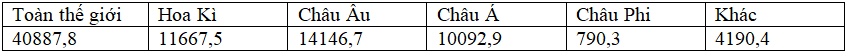 Bảng 6.3. GDP của Hoa Kì và một số châu lục năm 2004 (tỉ USD)