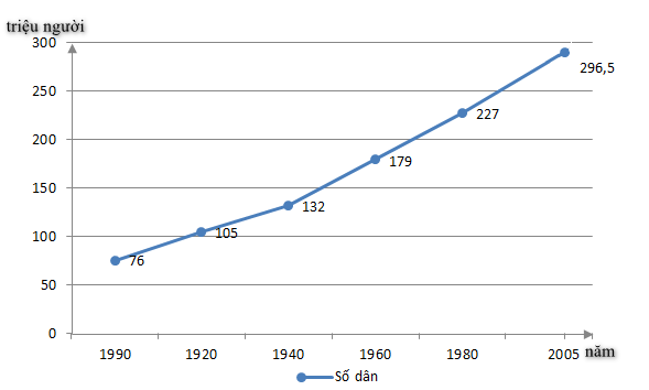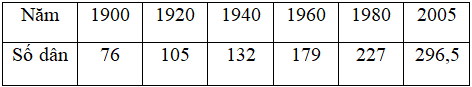 Cho bảng số liệu: Dân số Hoa Kì giai đoạn 1900 – 2005 (đơn vị: