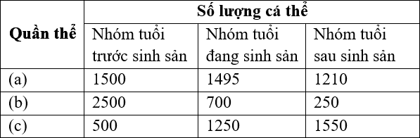 (4) Quần thể (b) đang tăng trưởng, quần thể (c) đang suy thoái.