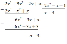 Cho hai đa thức \(A = 2{x^3} + 5{x^2} - 2x + a\) và \(B = 2{x^2} - x + 1\).