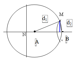 Giao thoa sóng nước với hai nguồn giống hệt nhau A, B cách nhau 20cm có tần số 50Hz. Tốc độ truyền sóng trên mặt nước là 1,5m/s. Trên mặt nước xét đường tròn tâm A, bán kính AB. Điểm trên đường tròn dao động với biên độ cực đại cách đường thẳng qua A, B một đoạn gần nhất là: