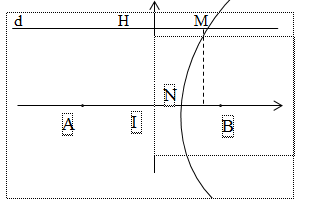 Hai nguồn sóng AB cách nhau 1 m dao động cùng pha với bước sóng 0,5m. I là trung điểm AB. H là điểm nằm trên đường trung trực của AB cách I một đoạn 100 m. Gọi d là đường thẳng qua H và song song với AB. Tìm điểm M thuộc d và gần H nhất, dao động với biên độ cực đại. (Tìm khoảng cách MH)