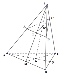 Cho hình chóp tam giác S.ABC có G là trọng tâm tam giác ABC. Gọi A’, B’ lần lượt là trung điểm