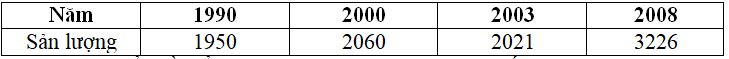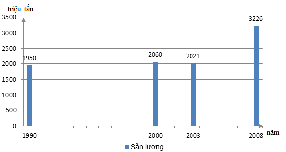Cho bảng số liệu sau: SẢN LƯỢNG LƯƠNG THỰC CỦA THẾ GIỚI, GIAI ĐOẠN 1990-2008 Đơn vị: