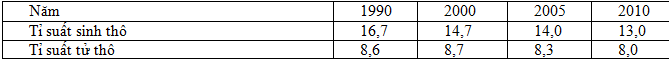 Cho bảng số liệu sau, nhận xét nào đúng? TỈ SUẤT SINH THÔ VÀ TỈ SUẤT TỬ THÔ CỦA HOA KỲ