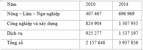 Với bảng số liệu: Tổng sản phẩm trong nước (GDP) phân theo ngành kinh tế của nước ta giai