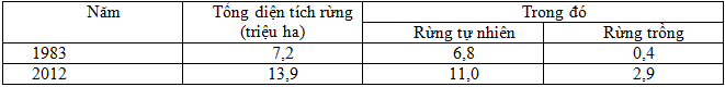 Cho số liệu: Tình hình diện tích rừng nước ta thời kì 1983 – 2012