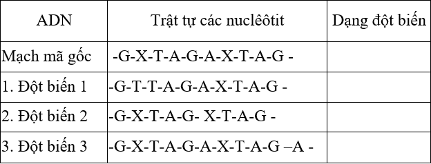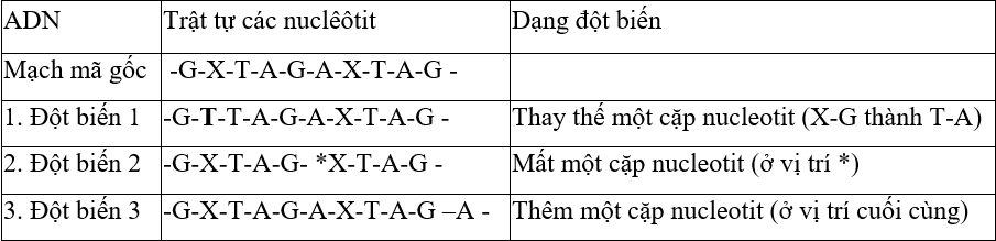 Các đột biến sau đây thuộc dạng đột biến nào ?
