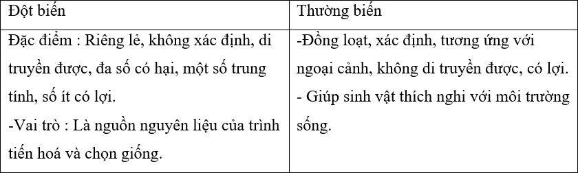 Đột biến và thường biến khác nhau như thế nào ?