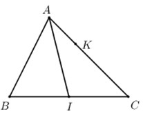 Cho tam giác ABC. Gọi I là trung điểm của BC; K là điểm thuộc cạnh AC sao cho \(KC = 2AK\).