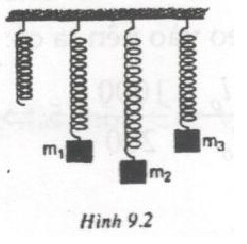 Lần lượt treo vào một lò xo các vật có khối lượng \({m_1},\,\,{m_2},\,\,{m_3}\) thì lò xo dãn ra như vẽ ở hình \(9.2\). Hãy so sánh các khối lượng \({m_1},\,\,{m_2},\,\,{m_3}\).