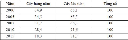 Dựa vào bảng số liệu, em hãy cho biết ý nào sau đây không đúng về diện tích gieo trồng cây công nghiệp nước ta giai đoạn 2000 – 2015