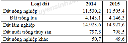 Cho bảng số liệu: Hiện trạng sử dụng đất nước ta năm 2014 và năm 2015 Đơn vị: nghìn