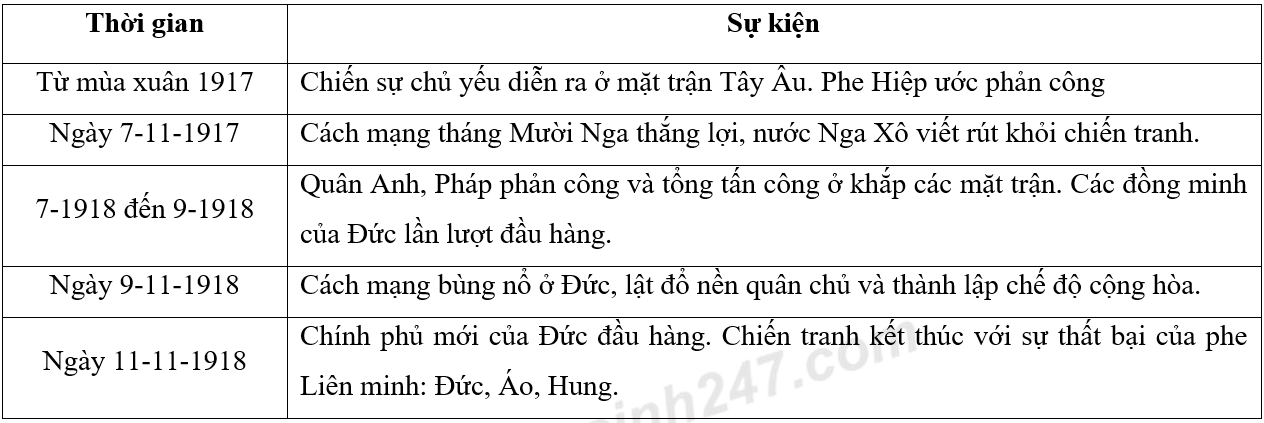 Lập niên biểu diễn biến chính trong giai đoạn thứ hai của Chiến tranh thế giới thứ nhất.