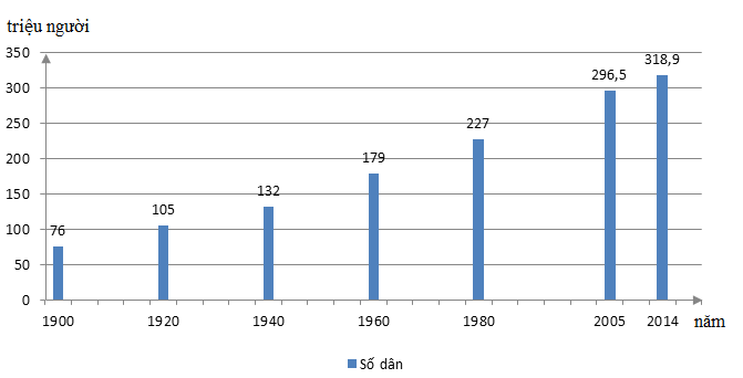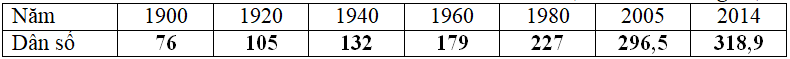 Cho bảng số liệu sau: Quy mô dân số Hoa Kì, giai đoạn 1900 – 2014 (Đơn vị: Triệu người) a.