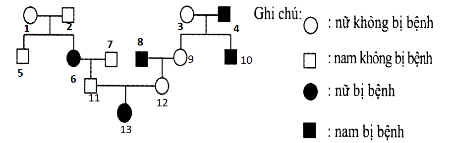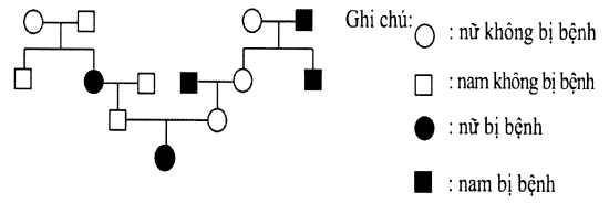 Phả hệ dưới đây mô tả sự di truyền của một bệnh ở người: