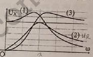 Đặt điện áp (U không đổi, ω thay đổi được) vào hai đầu đoạn mạch gồm điện trở thuần R, cuộn cảm thuần có độ tự cảm L và tụ điện cso điện dung C mắc nối tiếp. Trên hình vẽ, các đường (1), (2) và (3) là đồ thị của các điện áp hiệu dụng ở hai đâu điện trở UR, hai đầu tụ điện UC và hai đầu cuộn cảm UL theo tần số góc ω. Đường (1), (2), (3) theo thứ tự tương ứng là