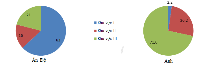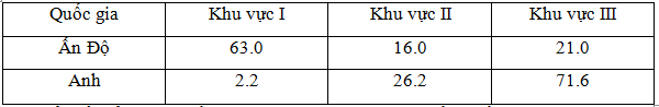 Cho bảng số liệu : Cơ cấu lao động theo khu vực kinh tế của Ấn Độ , Anh năm 2000. Đơn
