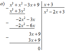 a) \(\left( {{x^3} + {x^2} - 3x + 9} \right):\left( {x + 3} \right)\)