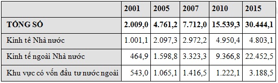 Doanh thu từ du lịch phân theo thành phần kinh tế của Việt Nam, giai đoạn 2001-2015