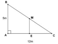 Một mảnh vườn lúc đầu có dạng tam giác \(ABC\) vuông tại \(A\), bờ rào \(AB\) dài \(5m\), rào \(AC\) dài \(12m\). Người ta sử dụng lưới ngăn dọc theo hai điểm \(E,\,\,M\)(\(E\) là trung điểm của \(AC\) và \(M\) là trung điểm của \(BC\)) để chia mảnh vườn thành hai phần trồng rau và hoa.