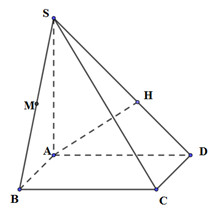 Khối chóp tứ giác S.ABCD có ABCD là hình chữ nhật AB = a, AD = 2a. Đường cao SA bằng 2a. Khoảng