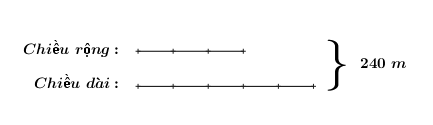 Một vườn cây hình chữ nhật có chu vi là 0,48 km và chiều rộng bằng \(\frac{3}{5}\) chiều dài.