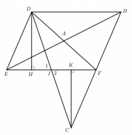 Cho tam giác DEF, lấy I là trung điểm cạnh EF. Trên tia đối của tia ID, lấy điểm C sao cho IC = ID.