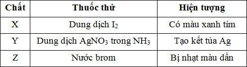 Kết quả thí nghiệm của các chất X; Y; Z với các thuốc thử được ghi ở bảng sau: