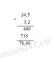 Đặt tính rồi tính: \(24,5 \times 3,2\)