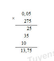 Đặt tính rồi tính: \(0,05 \times 275\)