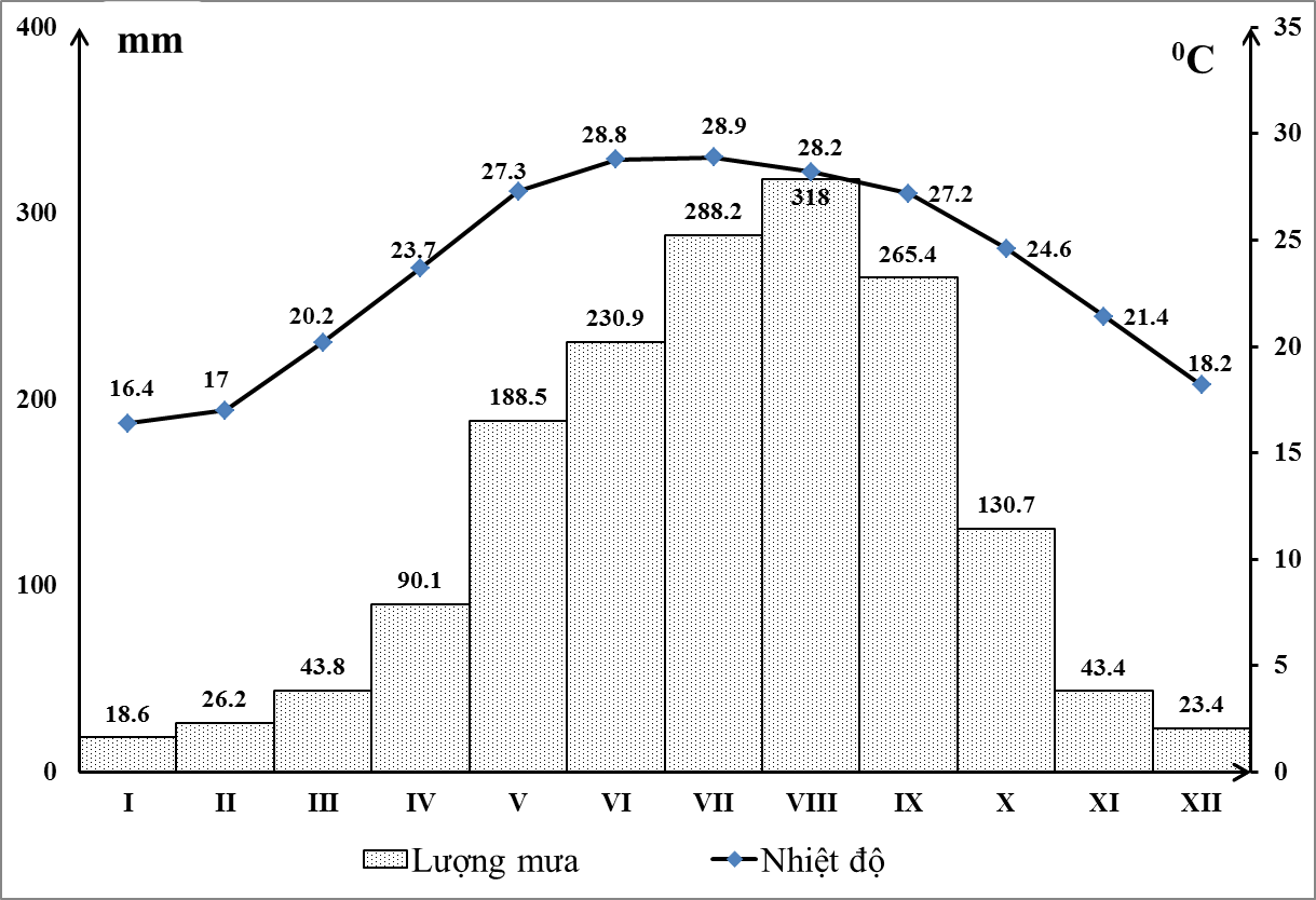 Căn cứ vào biểu đồ, cho biết nhận xét nào sau đây đúng với đặc điểm khí hậu Hà Nội?