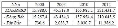 Giá trị sản xuất công nghiệp theo giá thực tế của Trung du và miền núi Bắc Bộ giai đoạn 2000 - 2012.