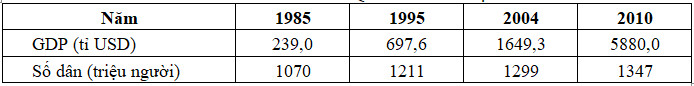 GDP VÀ SỐ DÂN CỦA TRUNG QUỐC GIAI ĐOẠN 1985 - 2010