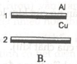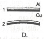 Hình nào trong hình 21.7 vẽ đúng băng kép đồng - nhôm (Cu - Al) trước khi được nung nóng (1) và